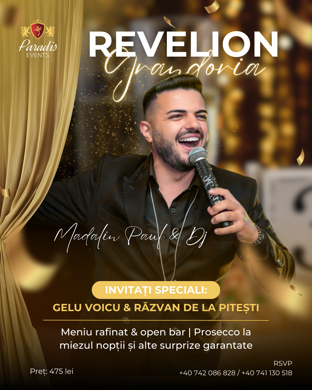 PRET: 475 RON 📞 0742 086 828 / 0741 130 518 Revelionul din Sala Grandoria aduce un program artistic energic și modern, construit special pentru …